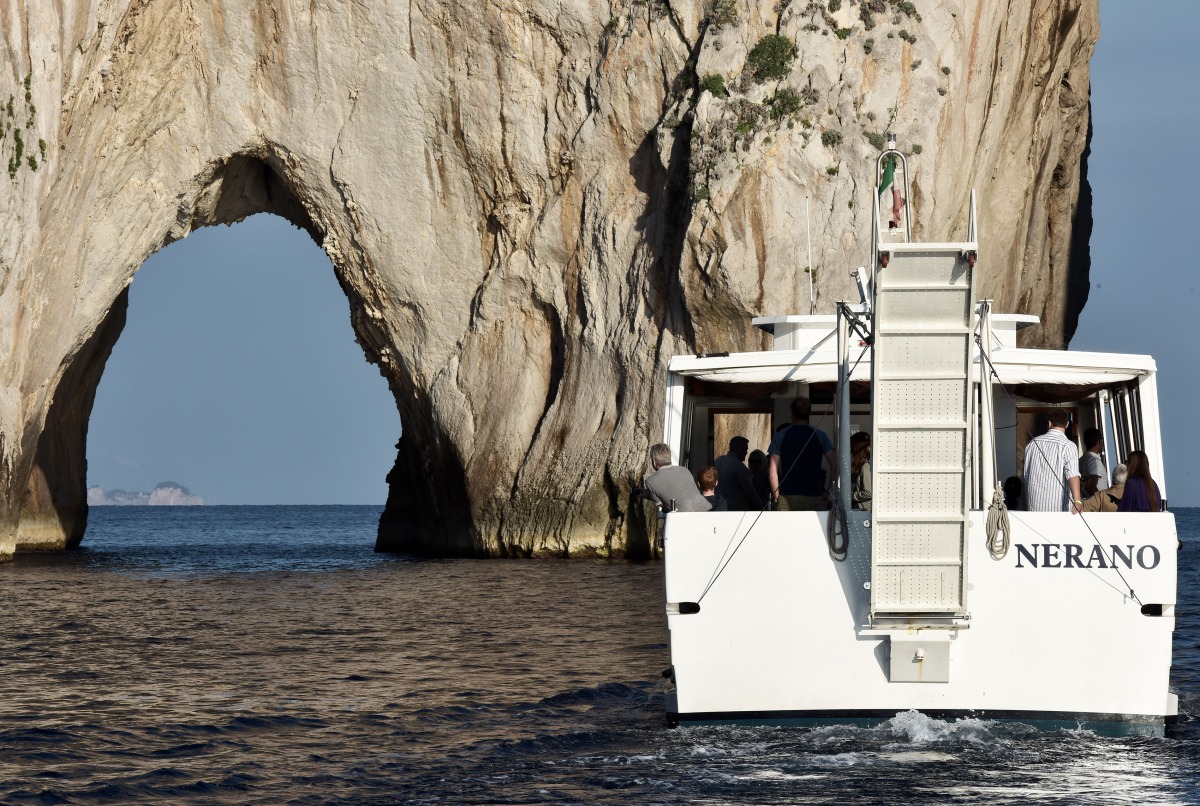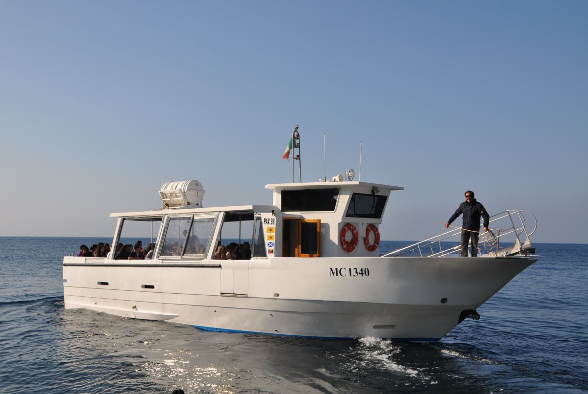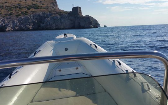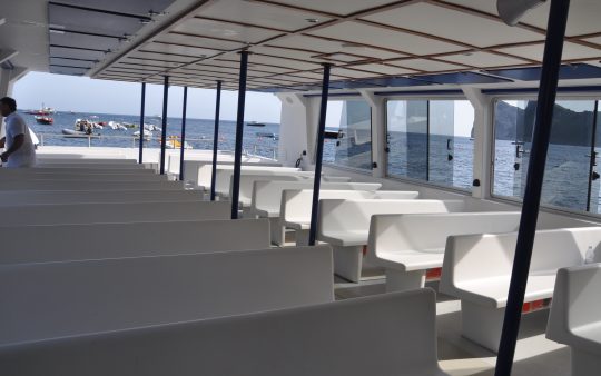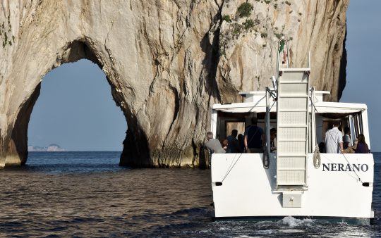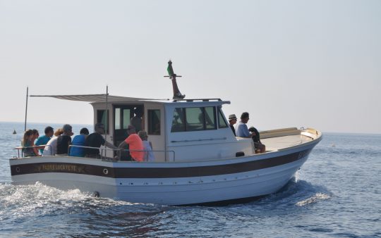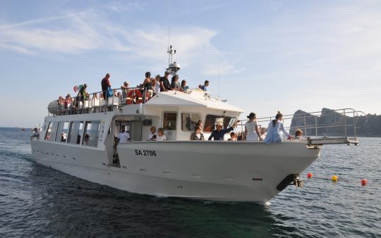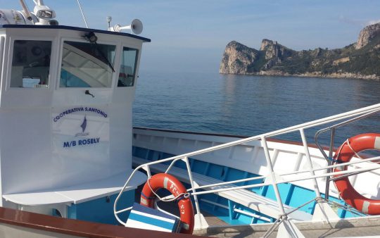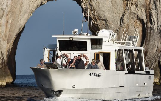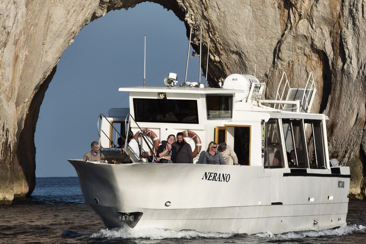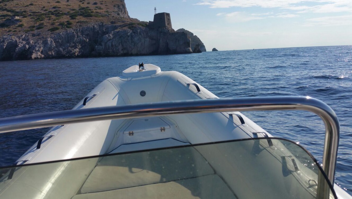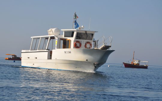 The typical boat of the Sorrento Peninsula, with wide sundeck and sofa at bow to admire the landscape in full comfort.