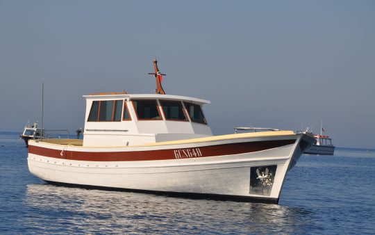 A boat with the simple and elegant line of old fishing boats, it stands out for its unique style.